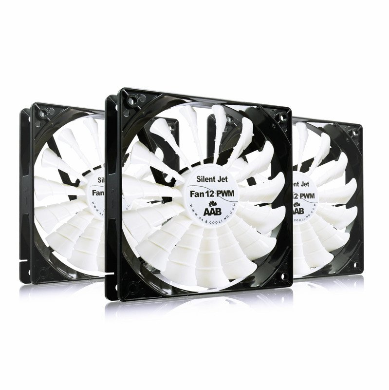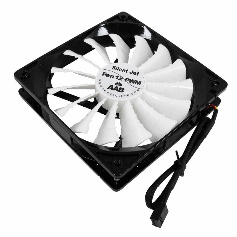 - The AAB Cooling Silent JET Fan 12 PWM is a highly-designed JET-Series fan with up to 15 turbine blades. This allows for significant increase in efficiency (up to about 65%) and noise reduction compared to standard fans.