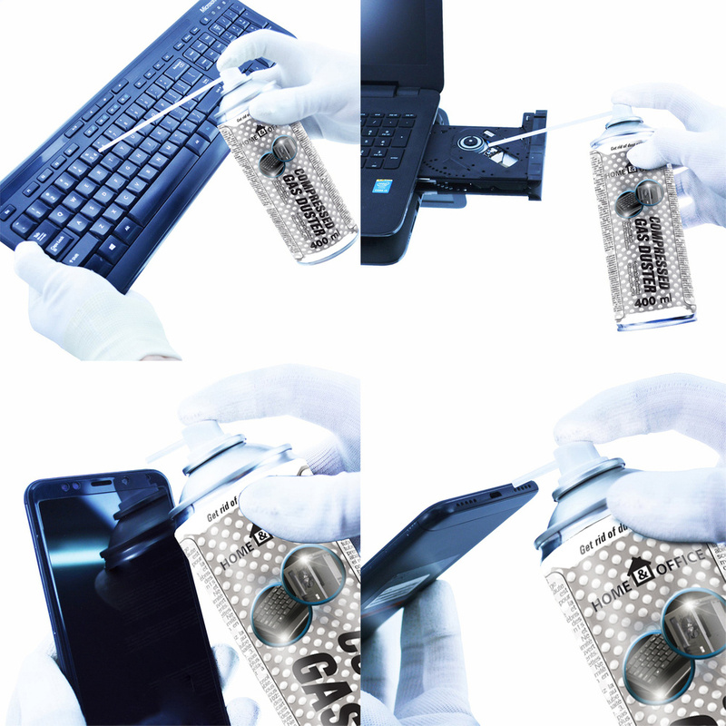 The Compressed Air Can is a high-pressure gas mixture. It is used to remove dust and other loose impurities from computer equipment, electronics, household appliances and other devices. Do not shake the container right before use.