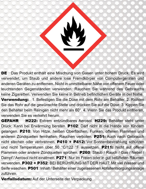To use AABCOOLING Home&Office Compressed Gas Duster safely, it is necessary to read the safety data sheet and/or the product label as well as to observe the safety measures: