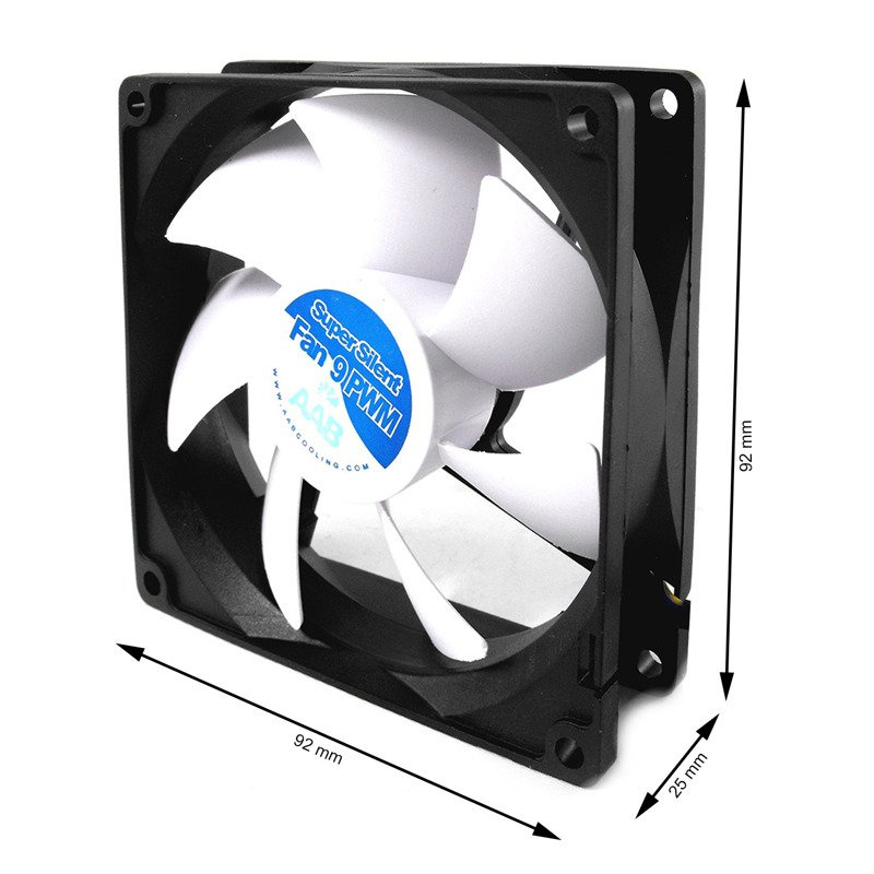 - AABCOOLING Super Silent Fan 9 PWM - ein hochwertiger, lautloser, preiswerter 92mm - Lüfter. Im Lieferumfang sind Anivibration - Silikonunterlegscheiben enthalten. Das moderne AFDB Lager garantiert die Lebensdauer 100000 Stunden.