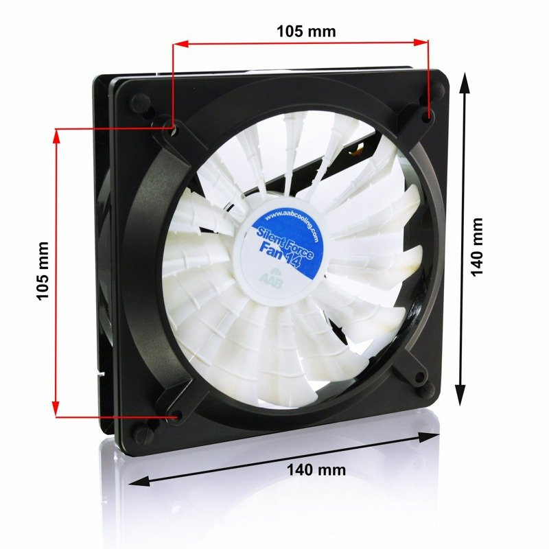 Die Installation von effizienteren Lüfter mit einer Größe von 140/120 mm in Orten, wo es nur Löcher für die Fans von 120/140 mm. Einfache und schnelle Montage mit AAB Kühl Anti Vibration Rubber Schrauben und Schrauben AAB Kühl Black 1.