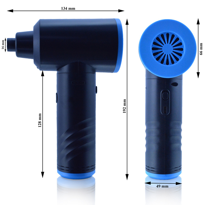 - USB-C-Ladekabel – Ermöglicht dank seiner Universalität das schnelle Aufladen des Gebläses und anderer Geräte.