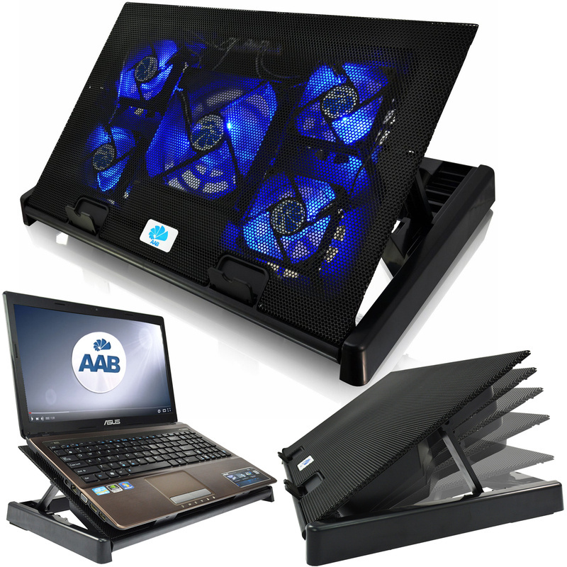 - AAB Cooling NC81 schwarz - der Kühler mit 5 x leistungsfähigen und lautlosen Lüftern (1 x 120mm oraz 4 x 70mm). Die bis 17 Zoll Notebooks können effektiv gekühlt werden. Der Drehregler ermöglicht die gleichzeitige Einstellung der Lüfter.