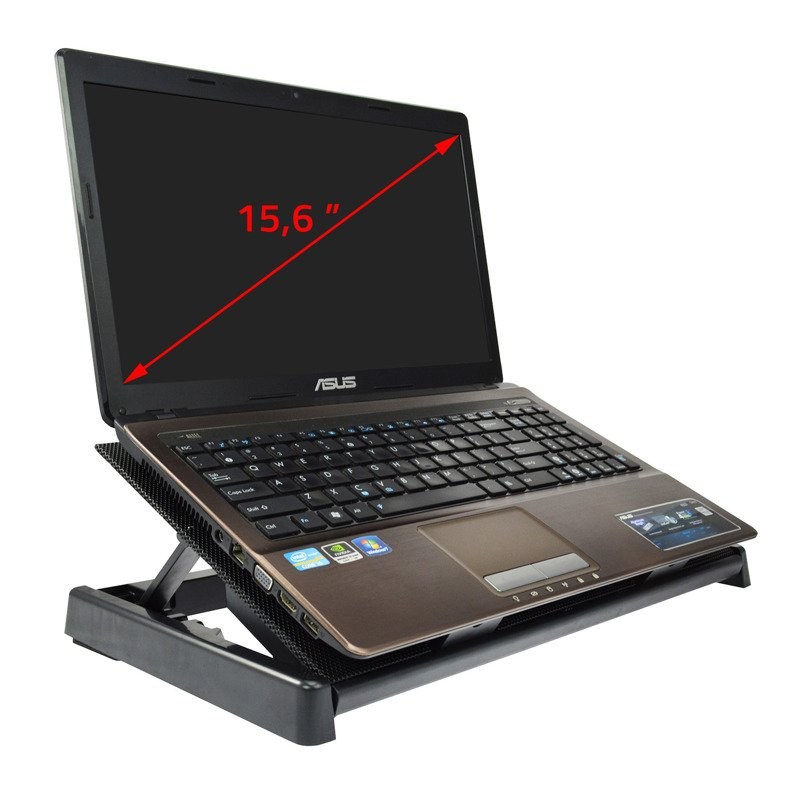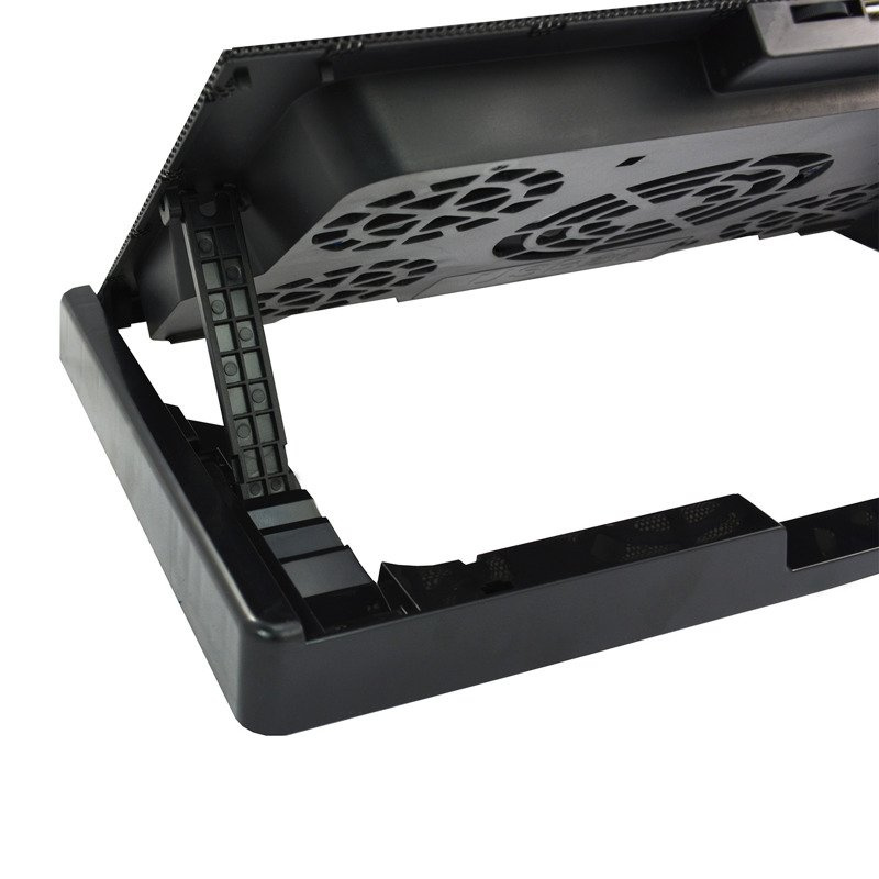 - Luftstrom : Die Kühlung übernehmen 5 x Lüfter, die kalte Luft ansaugen und über die Löcher an der Oberseite genau gegen die Unterseite des aufgesetzten Notebooks blasen. Das führt zur Reduzierung der Temperatur des Laptops und stellt eine gute Kühlung des Prozessorkerns sicher.
