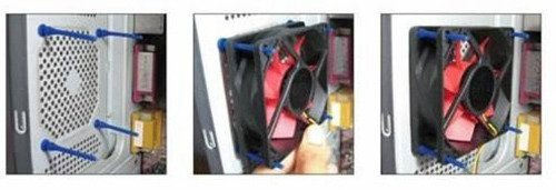 Dzięki swojemu kształtowi można je zastosować do wszystkich dostępnych wentylatorów o grubości ~25mm oraz do grubszych pod warunkiem, że boczna ścianka wentylatora nie jest zabudowana.