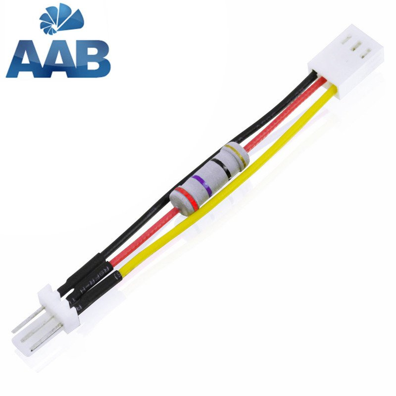 AABCOOLING AAB C20 to kabel pozwalający obniżyć napięcie zasilania wentylatora ze złączem 3 Pin, zastosowanie rezystora 27ohm pozwala na zmniejszenie napięcie z 12V do 9V. Zmniejszenie hałasu wentylatora.