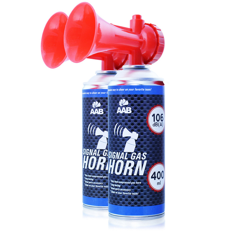 - AAB Signal GAS Horn - doskonały gadżet od firmy AAB Cooling. Trąbka ze sprężonym powietrzem jest głośna więc idealnie sprawdza się na meczach. Dźwięk trąbki na sprężone powietrze przykuwa uwagę, dzięki temu można go wykorzystać podczas happeningów.