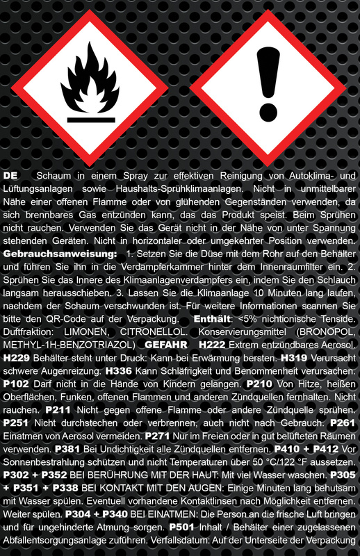 Aby bezpiecznie stosować AABCOOLING CLEAN AIR KLIMA FRESH należy zapoznać się z kartą charakterystyki i/lub etykietą na produkcje oraz przestrzegać środków bezpieczeństwa: