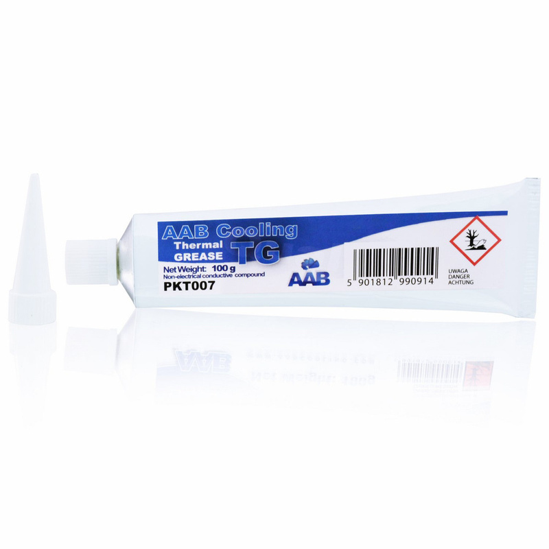 AABCOOLING Thermal Grease 100g to wysokiej jakości silikonowa pasta termoprzewodząca, która nie przewodzi prądu elektrycznego. Produkt ten jest niezbędny do prawidłowego przewodzenia ciepła z układów emitujących ciepło, elektroniki czy mikroelektroniki.