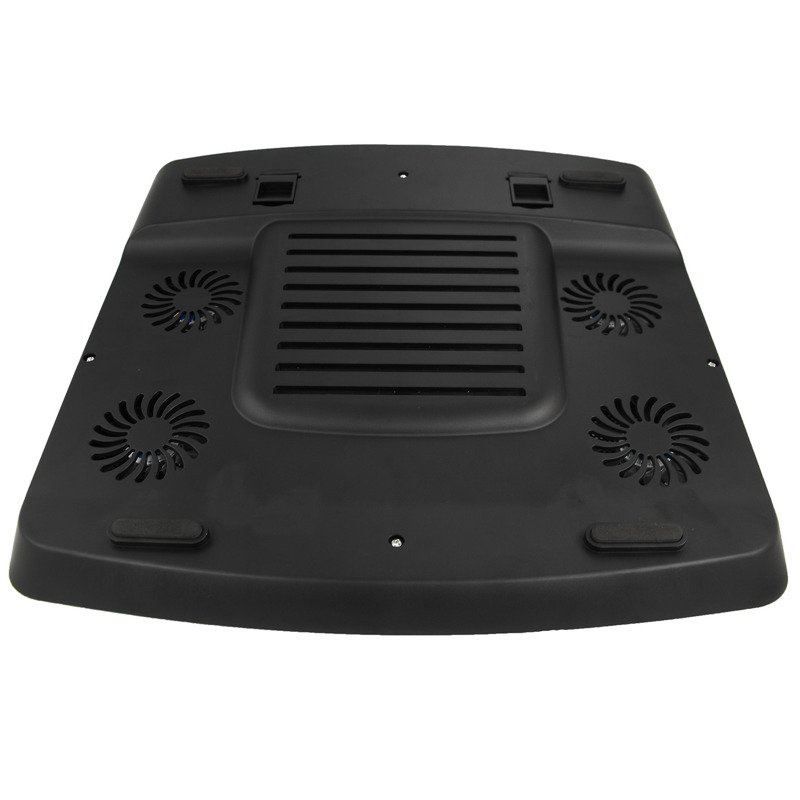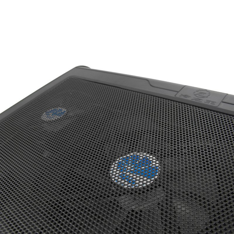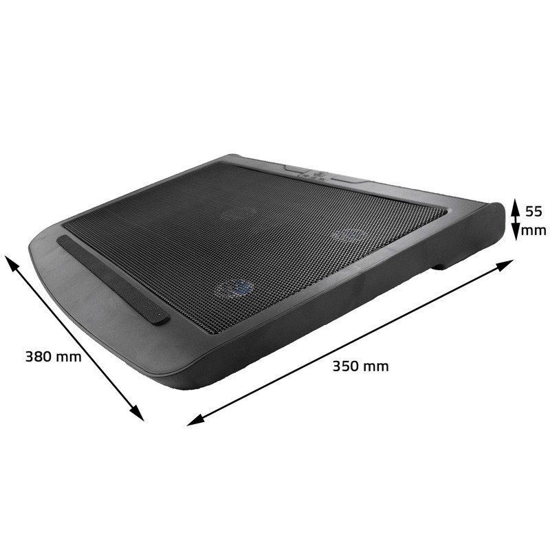 AABCOOLING NC45 Czarna Podstawka pod laptopa to pierwsza podstawka firmy AABCOOLING, która posiada aż pięć wentylatorów! Doskonała dla bardzo dużych notebooków, które potrzebują mocnej i solidnej podstawy chłodzącej. Za wydajne chłodzenie odpowiada jeden wentylator 120mm oraz cztery wentylatory 70mm. Waga ok 1,11 kg zapewnia stabilną pracę, a dwa przyciski Start/Stop pozwalają na włączanie osobno jednego wentylatora 120mm lub czterech wentylatorów 70mm. Jest również możliwe włączenie wszystkich wentylatorów tak, aby pracowały równocześnie. Dobrze wyprofilowana jest również dolna część podstawy, która umożliwia trzymanie chłodzenia na kolanach, tak, aby korzystać z notebooka również na łóżku. Odpowiednio zabezpieczone są wentylatory, aby uniemożliwić wkręcanie się np. pościeli. Podstawka wyposażona w podkładki zapobiegające rysowaniu się powierzchni biurka.