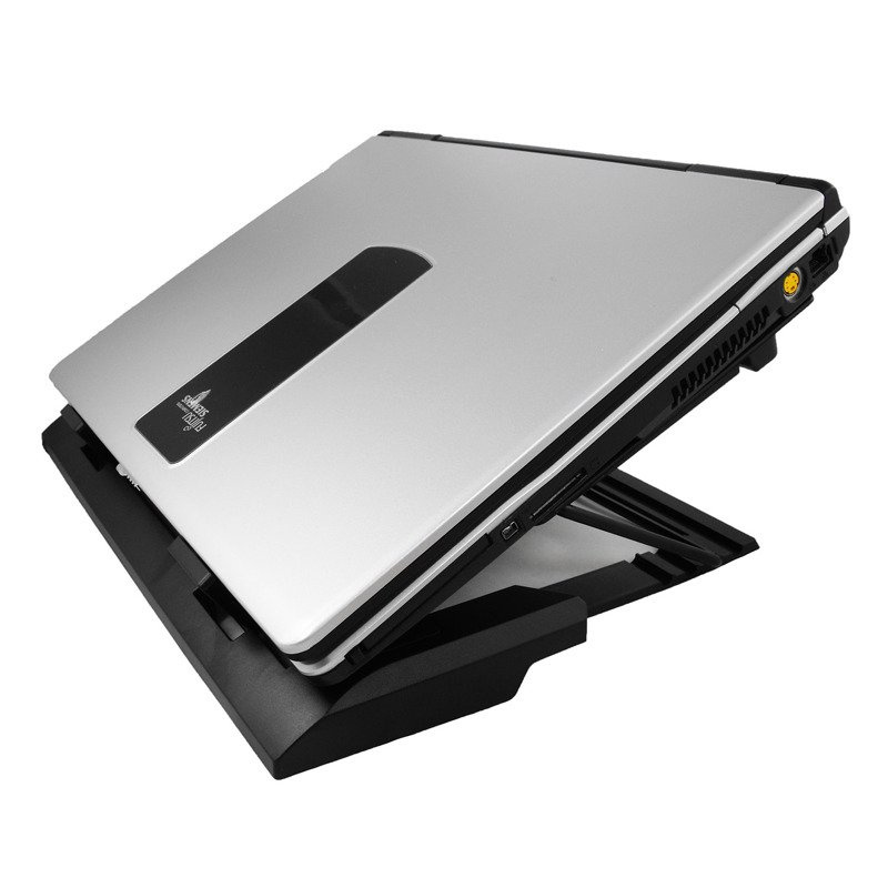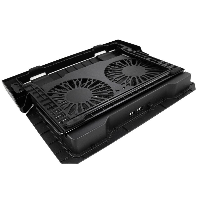 AABCOOLING NC65 Czarna Podstawka pod laptopa to podstawka firmy AABCOOLING, która posiada dwa duże, wysoko wydajne 12,5cm wentylatory z 11 łopatkami! Doskonała dla średniej wielkości notebooków, wymagających wydajnego chłodzenia. Każdy może dostosować kąt nachylenia do własnych potrzeb. Podstawka pod laptopa jest zrobiona z plastiku. Na spodzie również znajduje się mocny plastik. Na tylnej ścianie znajduję się dodatkowy port USB umożliwiający podłączenie dodatkowych urządzeń, pozwala to na uniknięcie problemy brakujących złącz USB. Regulacja wysokości kąta nachylenia podstawki i regulacja kąta znacznie poprawia ergonomię pracy.