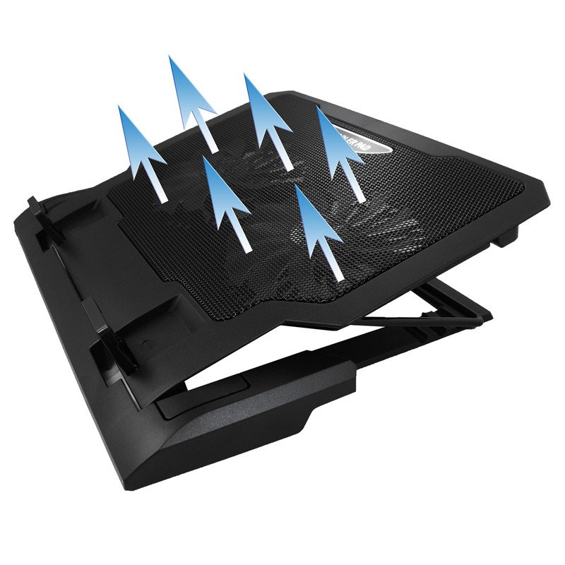 Użycie AABCOOLING NC65 Czarna podstawka pod laptopa pozwala utrzymać niską temperaturę laptopa, zabezpiecza przed przegrzaniem, a zarazem uniemożliwia wystąpienie kilku problemów: efekt spadku wydajności i wyraźne spowolnienie działania, zapalenie się baterii jak również spalenie procesora.