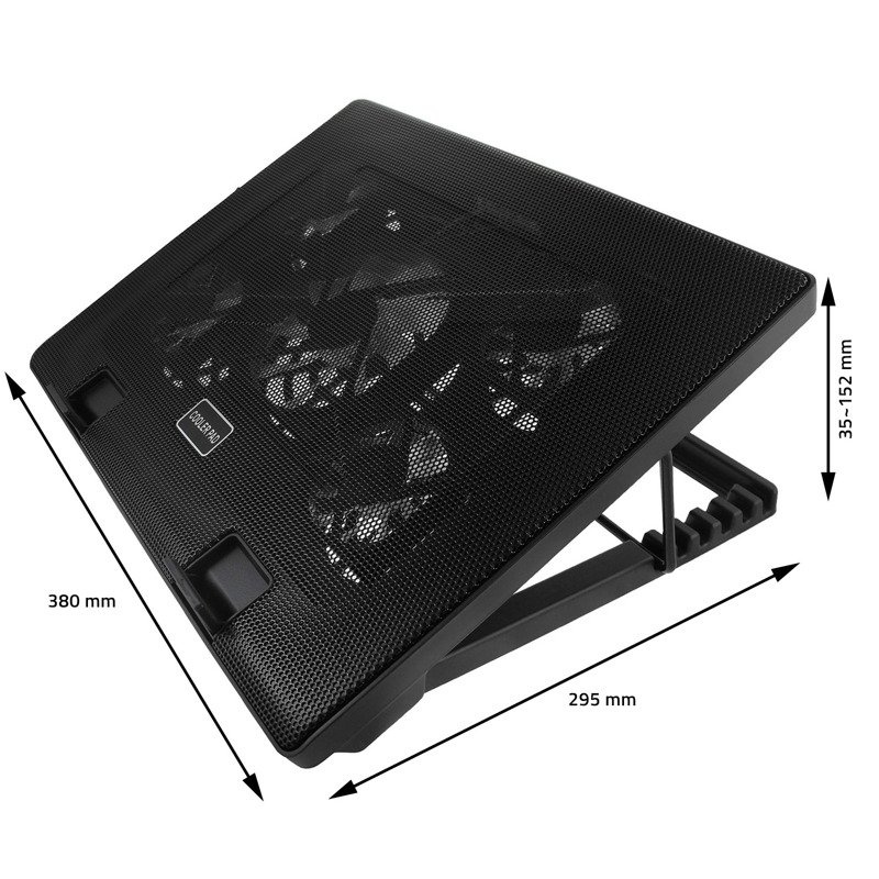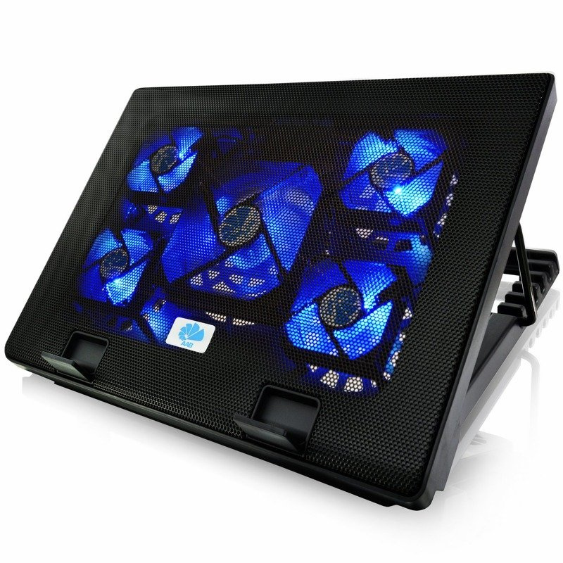 - AABCOOLING NC71 Czarna Podstawka pod laptopa to już kolejna podstawka firmy AABCOOLING, która posiada aż pięć wentylatorów! Doskonała dla bardzo dużych notebooków! Dolna część podstawy posiada pięciostopniową regulację kąta nachylenia.