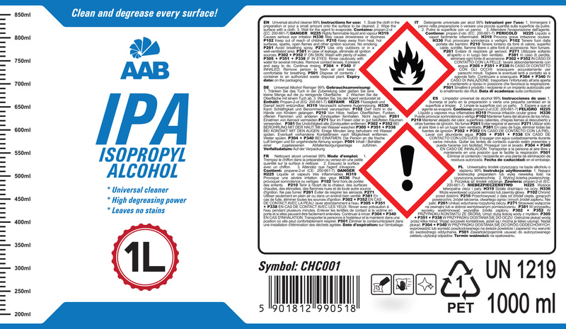 - AABCOOLING IPA 1 L to doskonałej jakości preparat od AABCOOLING, składający się z alkoholu izopropylowego o najwyższej czystości. Uniwersalny preparat do czyszczenia i odtłuszczania. Idealnie nadaje się do usuwania starych past termoprzewodzących.