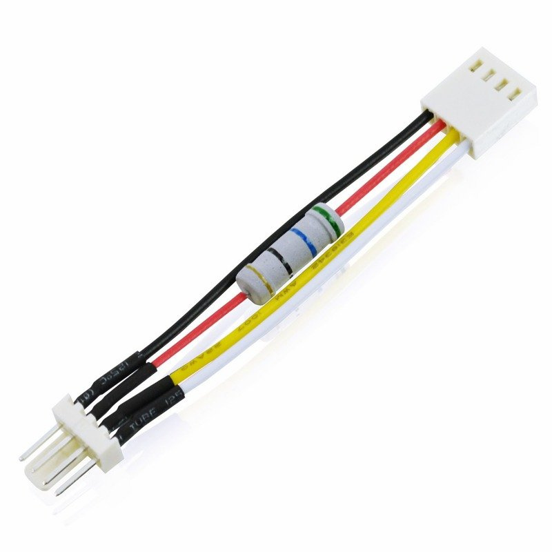 AABCOOLING AAB C13 to kabel pozwalający obniżyć napięcie zasilania wentylatora ze złączem 4 Pin PWM, zastosowanie rezystora 56 ohm pozwala na zmniejszenie napięcie z 12V do 9V. Zmniejszenie hałasu wentylatora.
