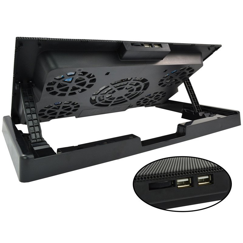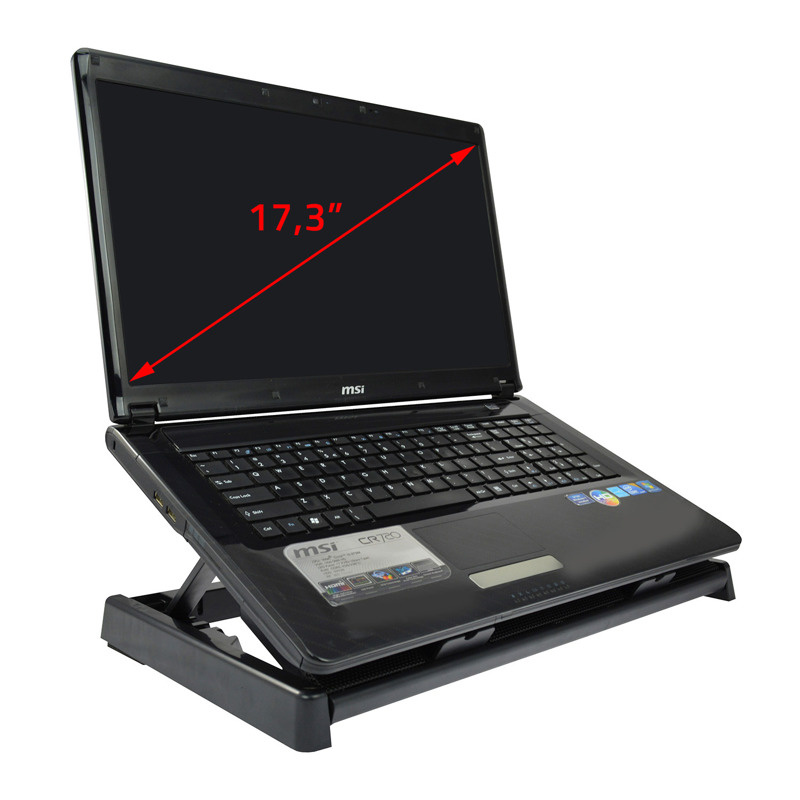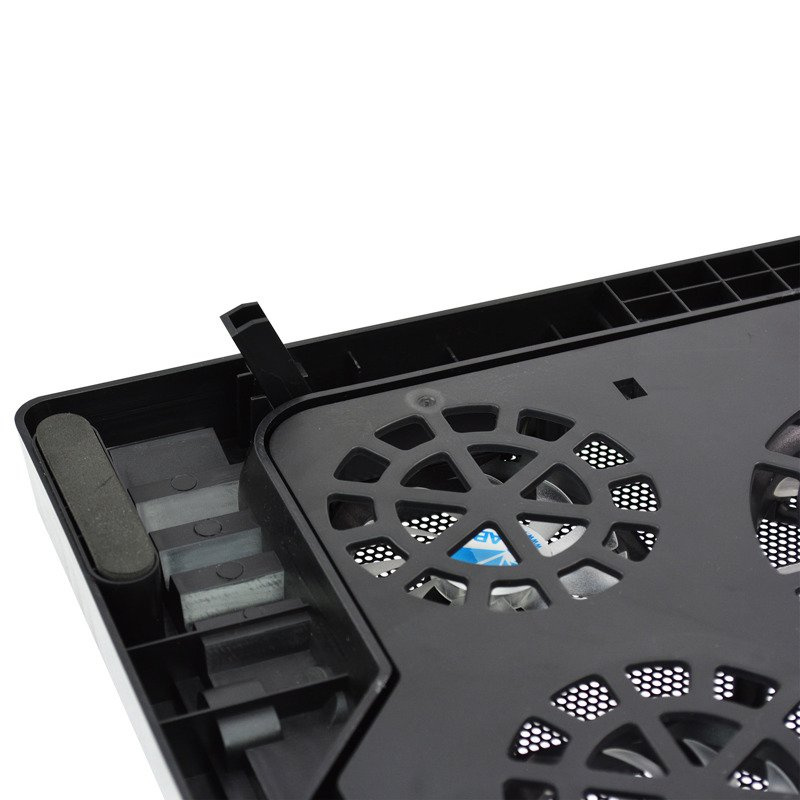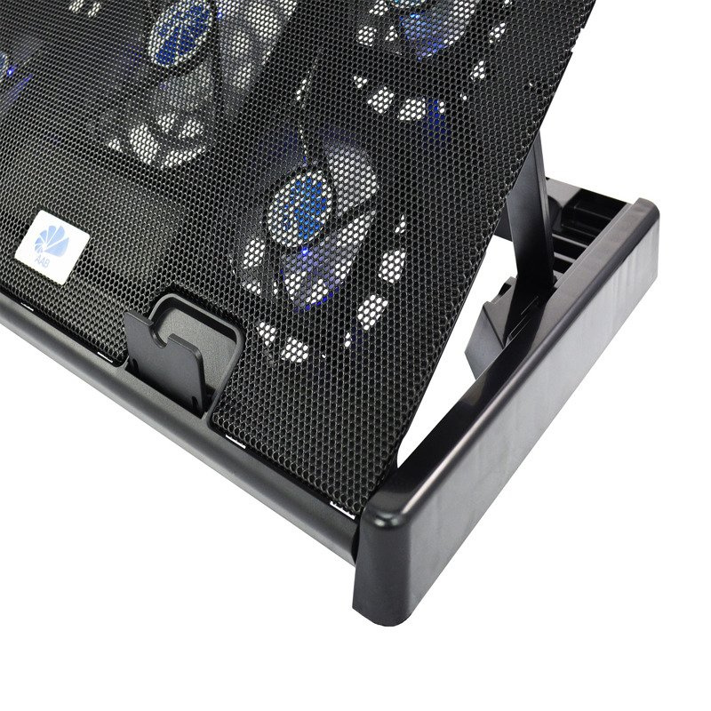 - Podstawka posiada aż pięć wentylatorów (1 x 120mm oraz 4 x 70mm). Idealna dla dużych laptopów o panoramicznych matrycach aż do 17". Waga ok 1026g zapewnia stabilną podstawę pod laptopa, a obrotowy potencjometr umożliwia jednoczesną regulację wentylatorów.